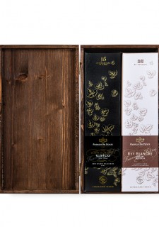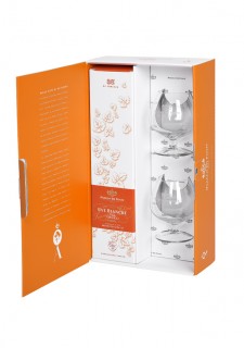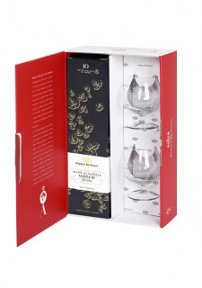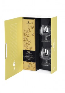 Die Schatulle enthält 2 Kognakgläser mit Siebdru