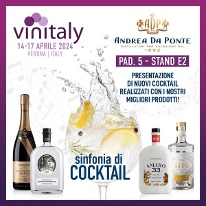 Andrea Da Ponte will be attending this new edition of Vinitaly with great news. Thanks to the collaboration with important bartenders, the distillery will launch a collection of brand-new cocktails made with both grappa and distillates as well as bitters and its new gin Golden Rive. On this occasion, these cocktails can be tasted directly at the stand.