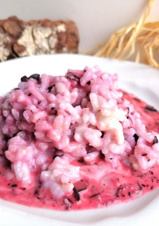 Blueberry risotto with aromatic grape spirit