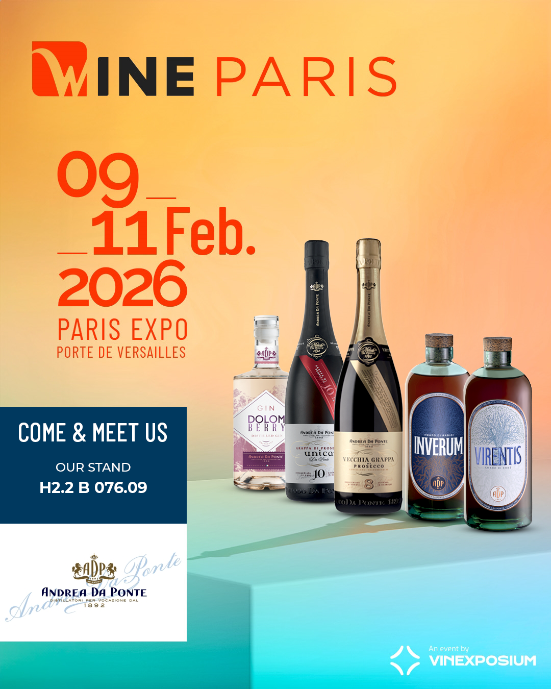 Dal 9 all’11 febbraio 2026 Andrea Da Ponte sarà presente al Wine Paris & Vinexpo Paris, uno dei principali appuntamenti internazionali dedicati al mondo wine & spirits, organizzato da Vinexposium nella prestigiosa cornice di Paris Expo – Porte de Versailles.